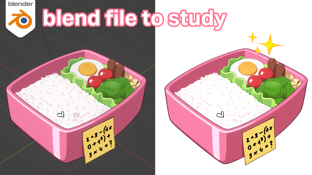 My pinterest is full of delicious looking anime food, so I thought it could be fun to recreate this Bento Box in Blender and share my project file with you! For anyone interested in learning how I made this and what goes into crafting a render like this. 😊