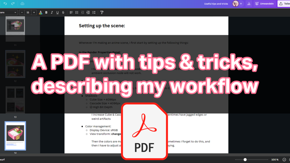- And a troubleshooting guide (2 pages), going over the most common problems I've encountered when creating an anime scene in Blender, like for example the shadows having weird jagged edges.