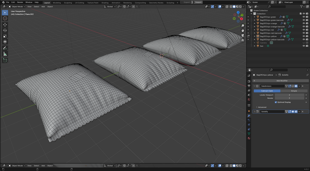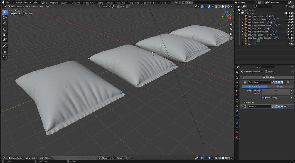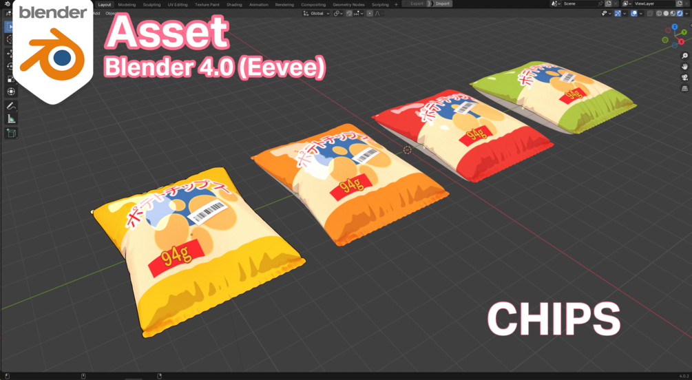 Stylized Chips in Blender 4.0 (Eevee)! With a toon shader setup so you can easily adjust things like for example the glossy highlight, or the shadow.