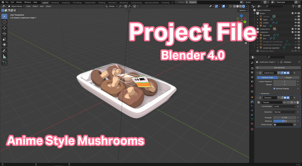 ANIME STYLE MUSHROOMS IN BLENDER 4.0 (EEVEE)